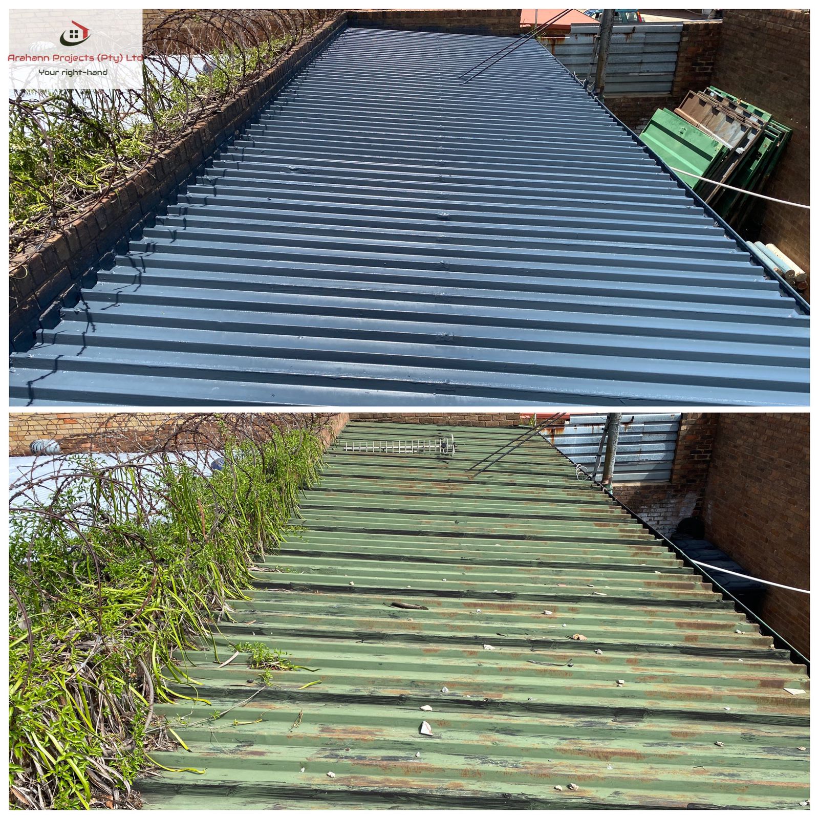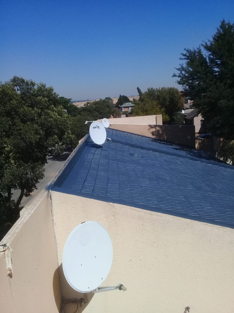 Done on tiles, corrugated metal sheeting and concrete slabs/roofing