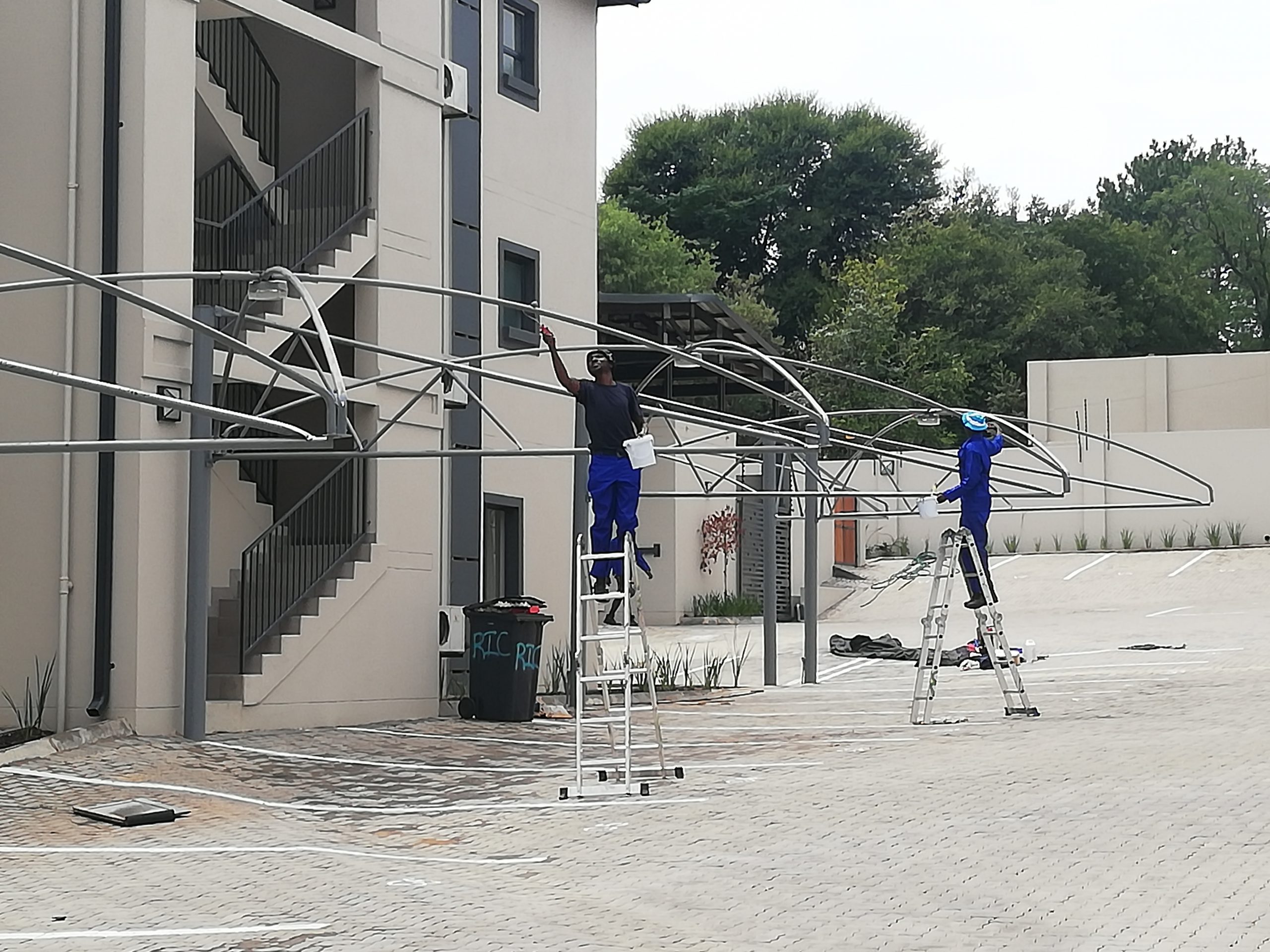 Repair, treat and paint steel carport structures