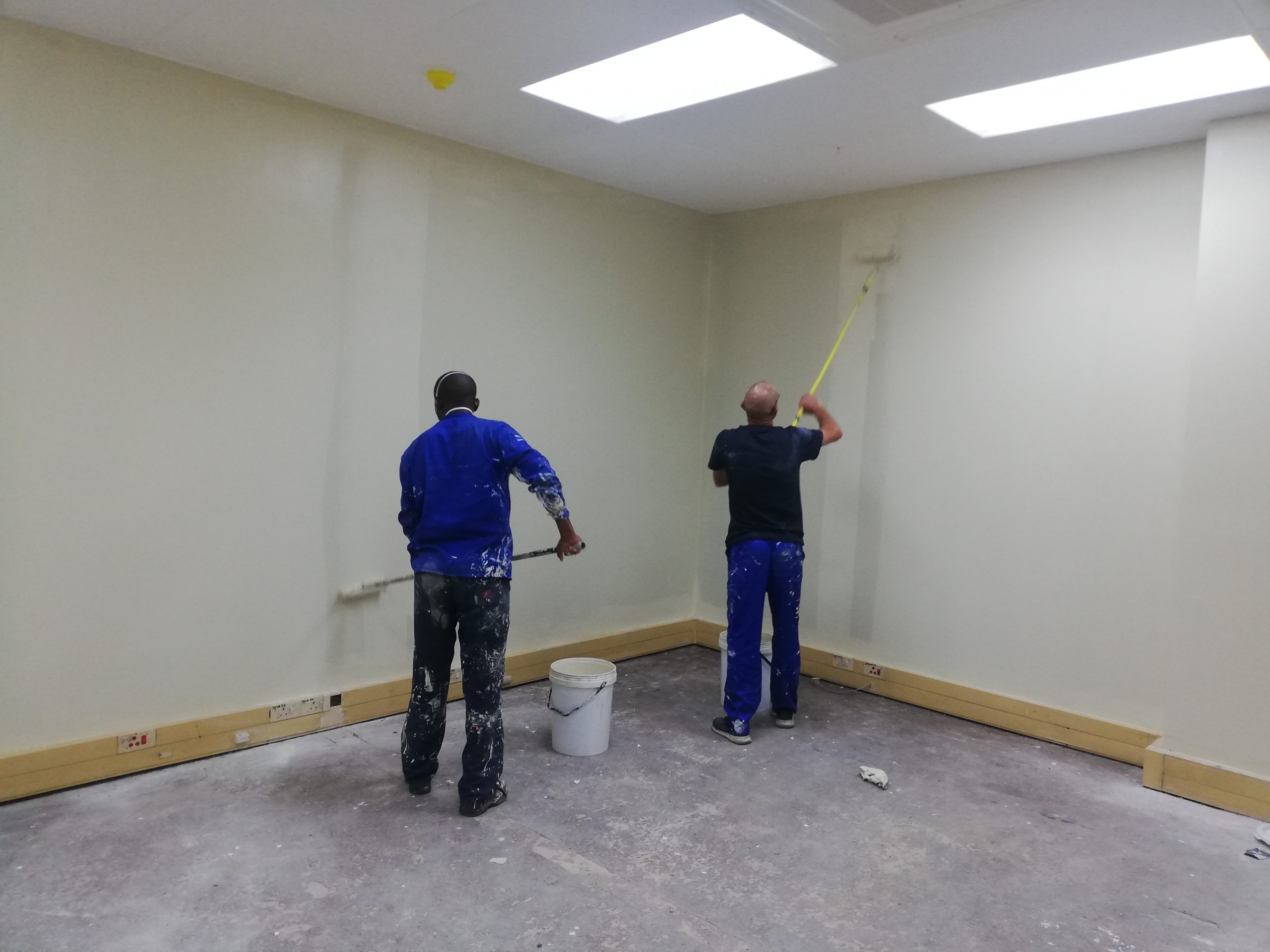 Painting of walls with rollers and brushes